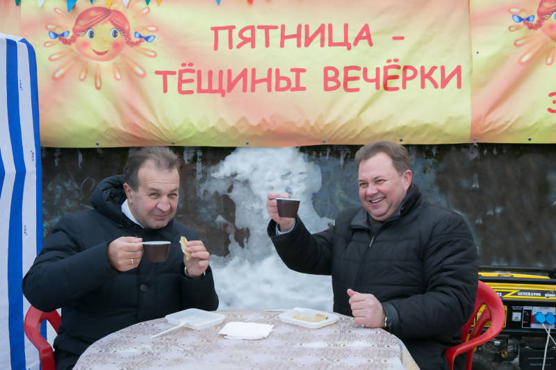 Виктор Павленко и Игорь Сунгуров не смогли пройти мимо и сняли пробу – полакомились только что испеченными блинами со сгущенкой: