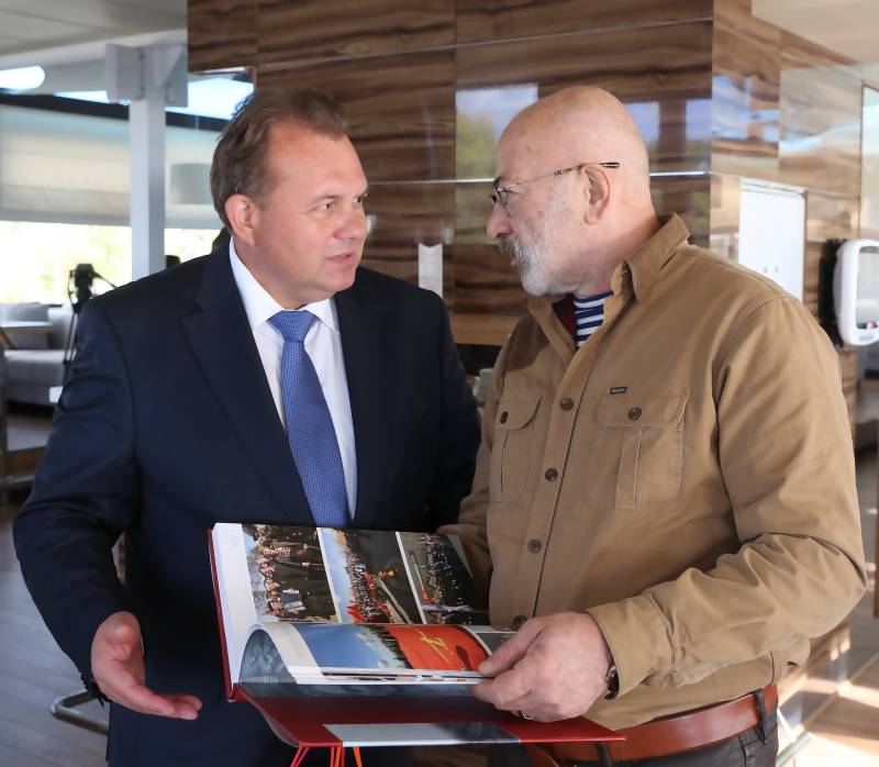 Градоначальник подарил Александру Розенбауму книгу о культуре Русского Севера и памятные подарки. Виктор Павленко отметил, что горожане ждут выступления любимого музыканта.