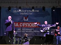 – И сегодня здесь на этой сцене великий артист и петербуржец Александр Розенбаум. Песни этого человека всегда вели нас вперед, всегда говорили, что мы все можем, что мы великий народ и достигнем своих целей. И сегодня мы вместе строим наше будущее. За Архангельскую область!