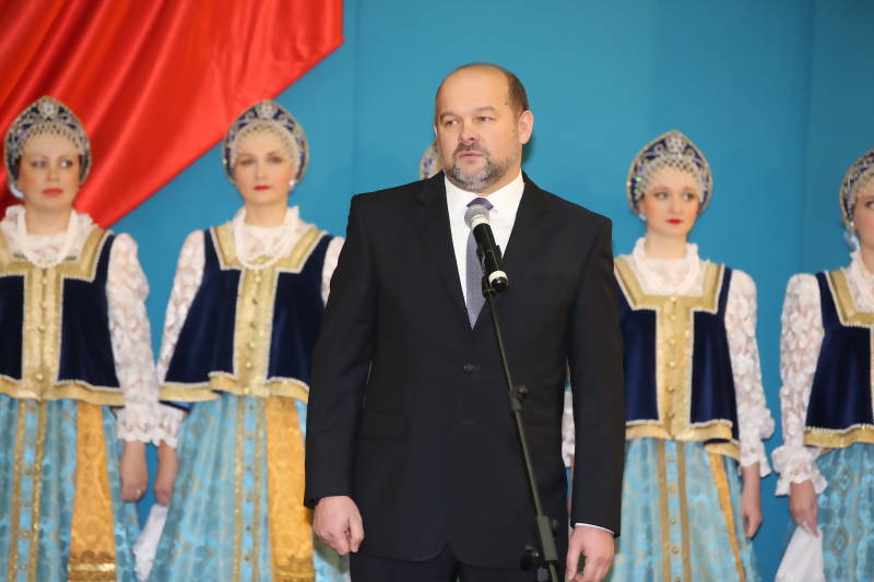 После исполнение городским оркестром под управлением Вадима Данилюка гимнов Российской Федерации, Архангельской области и города Архангельска, Игоря Годзиша поздравили официальные лица.