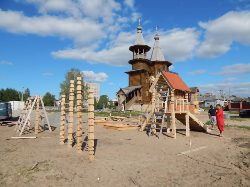 В 2013 году прошел субботник по обустройству пешеходной дорожки от Ленинградского проспекта к Северной Двине. Тогда активисты вырубили заросли кустарников, выкорчевали пни. Тогда же установили открытую спортивную площадку «Полоса препятствий». В 2014 году работы по созданию спортивного комплекса продолжились - была сделана волейбольная площадка, подготовлено место под теннисные столы, началось обустройство беговой дорожки. Рядом с храмом поставили деревянный детский игровой комплекс.