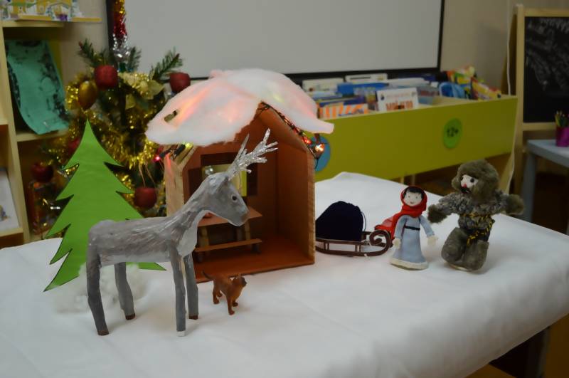 Библиотекари обратили внимание детей на то, что козлик показывается только трудолюбивым, отзывчивым и добрым людям. Своё трудолюбие дети продемонстрировали, подметая пол, прибирая книги, мальчики показали, как они забивают гвозди. А в конце все вместе сделали рисунки на окнах с помощью губки и зубной пасты. Ну, и конечно, после таких трудов Серебряное копытце угостило ребят вкусными драгоценными камешками.