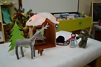 Мероприятие началось с настольного кукольного спектакля по сказу Павла Бажова «Серебряное копытце». Многие дети с произведением уже знакомы, но всё же с интересом смотрели спектакль и с нетерпением ждали появления Серебряного копытца. Оно, по рассказам Коковани, где бить ножкой начнёт, там появится груда драгоценных камней. Конечно, всем – и взрослым, и детям – захотелось увидеть настоящего Серебряного копытца и получить от него заветный драгоценный камень.