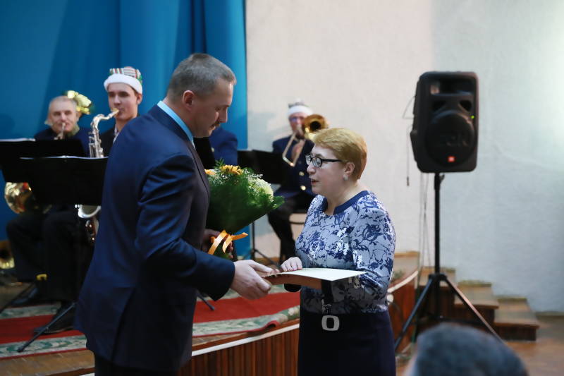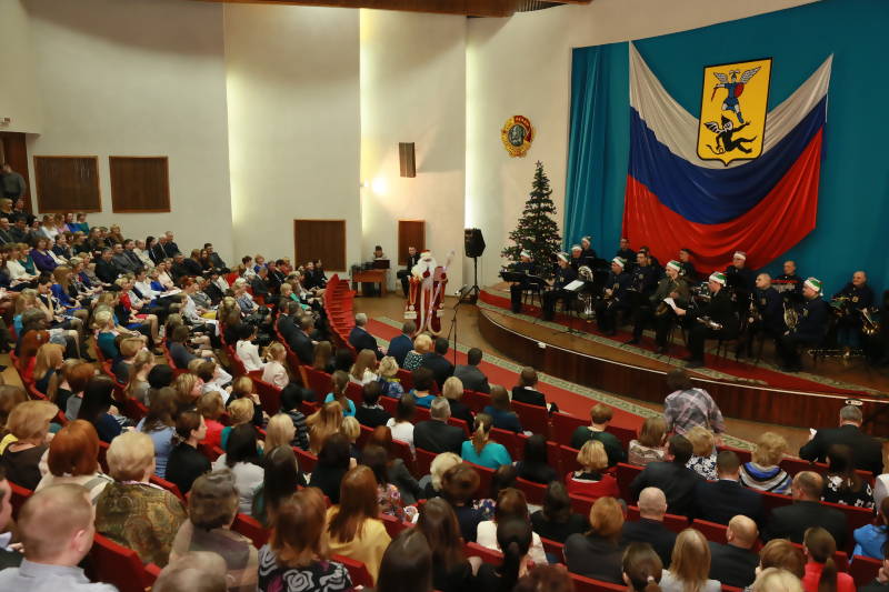 Подарком для всех сотрудников муниципалитета стала праздничная программа Городского духового оркестра имени Владимира Васильева под руководством художественного руководителя и дирижера Вадима Данилюка, а также знаменитых вокалистов Марии Корель и Анатолия Кучерука.