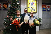 Затем градоначальник вручил победителям конкурса «Лучший муниципальный служащий 2015 года» памятные знаки и цветы.