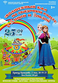 В Архангельском городском культурном центре для семей с детьми от трёх до девяти лет 25 сентября в 11:00 состоится семейная развлекательная программа «Волшебный бал на сказочной радуге с Анной и Эльзой».
