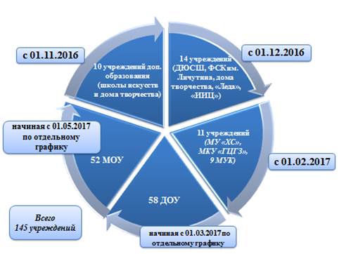 Поэтому передачу муниципальными учреждениями функций по ведению бюджетного (бухгалтерского) учета и формированию отчетности планируется проводить поэтапно в течение 2016 и 2017 годов.