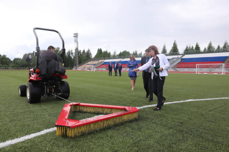 – Особое внимание мы уделяем поддержанию в хорошем состоянии покрытия футбольного поля. Есть своя специфика: в зависимости от нагрузки, от количества матчей, его периодически нужно «расчесывать» с помощью специального трактора, поднимать ворс, - пояснил Игорь Тропин. – Покрытие качественное, дорогое, так что мы за ним тщательно ухаживаем, стараемся, чтобы оно как можно дольше сохранилось в таком виде.