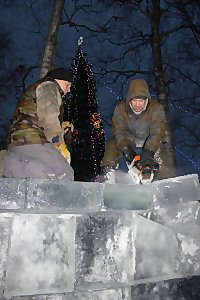 - Для создания парка был необходим особый прочный лед, подходящий нашли на озерах рядом с городом. Всего для Леденцового парка Снеговика потребовалось 500 ледяных кубов. Из него искусными мастерами-плотниками будет сделаны ворота, аллея, автодром, лабиринт, чашка - горка и много других зимних забав, - отметила директор КЦ «Соломбала - Арт» Марина Малахова.