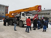 В ООО «РВК-центр» поступил новый автомобильный кран «Ивановец» грузоподъемностью 25 тонн на базе вездеходного шасси КамАЗа. Автокран оборудован четырехсекционной телескопической стрелой, которая позволяет поднимать и перемещать грузы на средних и дальних вылетах.