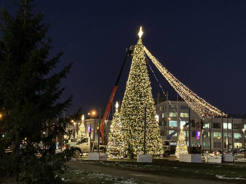 По поручению губернатора Архангельской области Александра Цыбульского в Архангельске реализуют программу мероприятий по украшению города к Новогодним и Рождественским праздникам. Реализация программы на постоянном контроле главы Архангельска Дмитрия Морева.Горожан ждет приятное событие: на площади Ленина идет установка новой главной ели. Высота новогодней красавицы 17 м, в диаметре она порядка 6 м, состоит из 29 ярусов. Новогоднее убранство ели – 700 золотых и серебряных шаров. Венчает символ нового года макушка «Роза ветров» высотой полтора метра. Яркое сияние звезды обеспечивают 700 диодов.