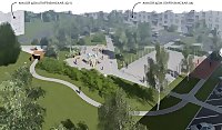 Дизайн-проект предусматривает здесь появление зеленой зоны, где можно будет отдыхать и заниматься спортом. Здесь разобьют газон и проведут масштабное озеленение, высадив несколько десятков деревьев и организовав живую изгородь. Предусмотрены детская и спортивная площадки, а также зона отдыха, которые включают в себя сектора с игровым оборудованием, тренажерами и скамейками. Прогулочные дорожки будут выложены тротуарной плиткой, а на одной из них установят перголу, в тени которой можно будет укрыться от солнца. Для удобства отдыхающих будут организованы линия наружного освещения и парковка.