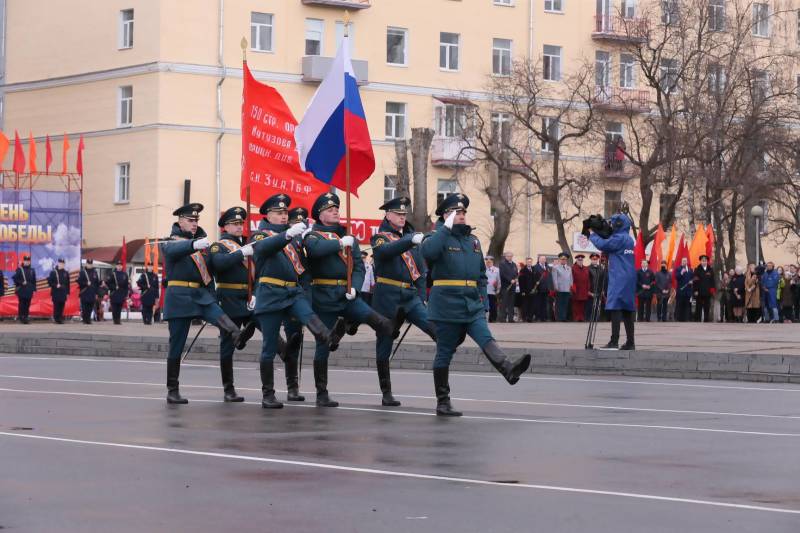 В честь заслуг поколения победителей, отдавая дань памяти павшим, в торжественном шествии войск по площади Мира прошли воины Архангельского территориального гарнизона.