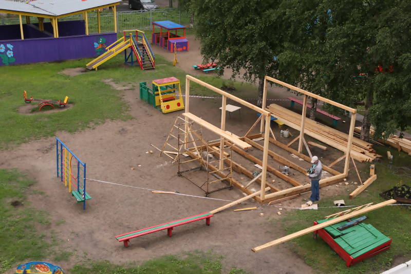 Еще один садик Ломоносовского округа, где начались работы по капремонту третьего этажа, находится на пр. Новгородский. В «Калинушке» демонтажные работы в самом разгаре, а параллельно подрядчик завозит утеплитель и другие материалы для крыши. На время проведения шумных работ воспитанников примет в своих стенах садик поблизости. Подрядчику поставлена задача – уложиться в отведенный срок до 12 сентября.