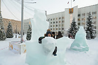 Пятый год подряд ледовые фигуры на площадке для гуляний устанавливаются за счет спонсора – компании «Кардинал». Ее представитель Евгений Леонтьев рассказал, что эскизы будущих скульптур не повторяются – их готовят с учетом символа года и отзывов горожан. Например, детям нравятся фигуры, в которые можно войти, посидеть на них. Поэтому в этом году будет открытый домик, трон и сани. Хотя «клеем» для кубиков льда служит вода, скульптуры получаются прочными.