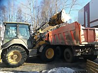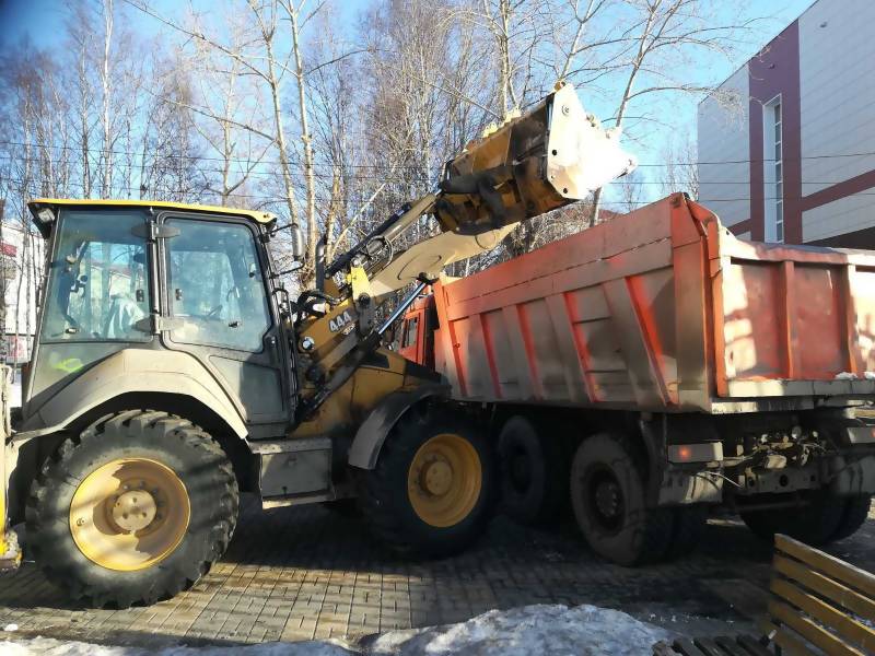 Также ведутся работы по расчистке и погрузке снега с тротуара по ул. Тимме (четная сторона, от д.2 до д.18);