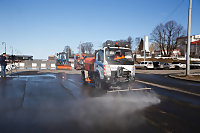 Новая технология уборки после зимы предполагает участие трех машин.