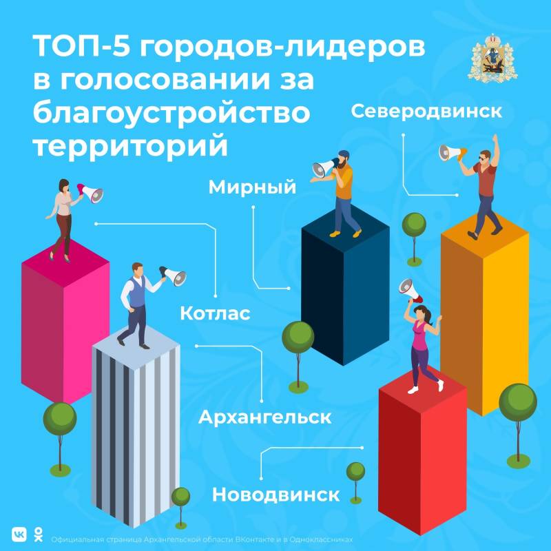 Более 11 тысяч проголосовавших на сегодня – из Архангельска, также активность проявляют северодвинцы: более двух тысяч голосов они отдали за понравившиеся пространства. Котлас, Мирный, Вельск, Каргополь и Коряжма – в середине списка, количество проголосовавших – от 441 до 686 человек.