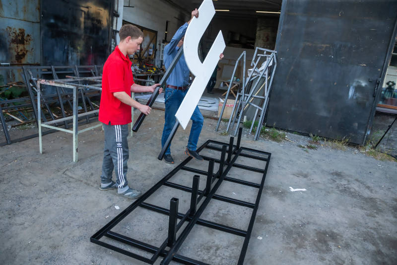 Глава Архангельска Дмитрий Морев посетил цех компании «Народная реклама»: именно здесь изготавливают новый оригинальный арт-объект. В последние дни лета его установят на берегу Северной Двины в районе площади Мира.«Счастье не за морями» - сверкающие белые буквы высотой 1,8 метра – уже изготовлены из влагостойкой фанеры и закрепляются на металлическом каркасе.