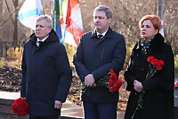 Участники митинга возложили к захоронениям цветы и почтили память погибших минутой молчания.