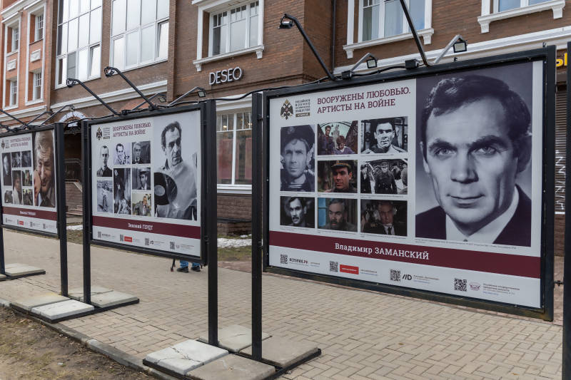Организатором выступило Российское военно-историческое общество. Уличная экспозиция носит название «Вооружены любовью. Артисты на войне».С первых дней Великой Отечественной войны представители различных жанров искусства: актеры, музыканты, певцы, танцоры, чтецы сопровождали армию в тяжелых битвах и победных маршах, на передовой, в тылу и госпиталях. Поддерживать боевой дух армии и флота - в этом была их артистическая и человеческая миссия.