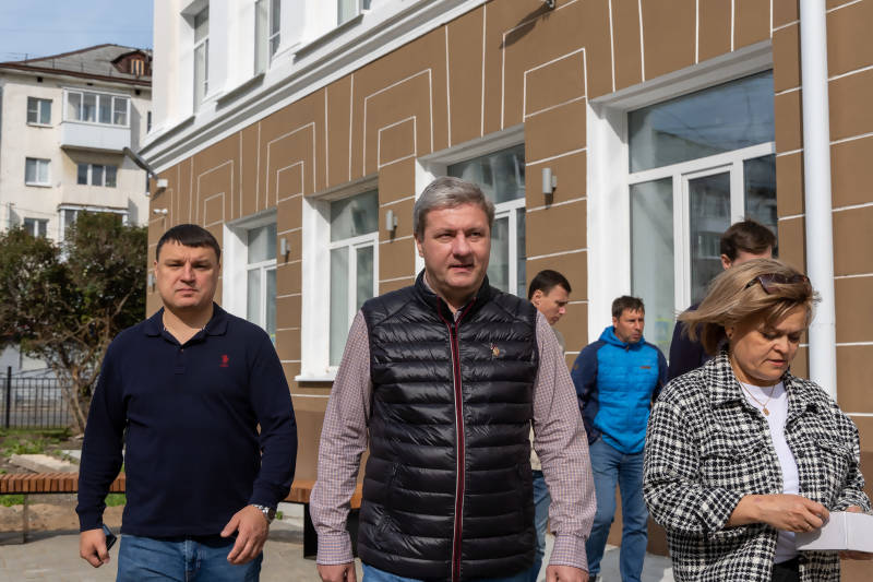 В минувшие выходные глава города Дмитрий Морев вместе с общественниками Максимом Хохулиным, Натальей Братиной, депутатом городской Думы Владимиром Хотеновским оценили ход ремонтных работ на трех объектах и посетили новую школу №7 в округе Майская Горка.