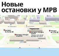 Остановки у пенсионного фонда и в районе «Терминала» ( при движении в направлении ул. Урицкого) временно исключены из схемы движения общественного транспорта.Открыты две полосы для заезда и выезда на территорию площади перед МРВ, где организованы остановки. Со стороны причалов у здания МРВ организована стоянка автобусов.