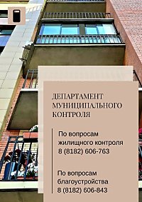 По вопросам жилищного контроля обращаться по адресу: ул. Воскресенская, 7, тел. 8 (8182) 606-763.