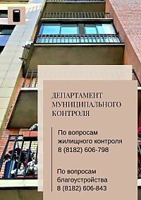 По вопросам жилищного контроля обращаться по адресу: ул. Воскресенская, 7, тел. 8 (8182) 606-798.