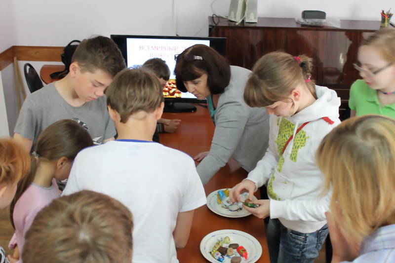 13.07.2015 года для детей детского оздоровительного лагеря «Радуга» в МБУ "Центр охраны прав детства" была организована познавательная игра-викторина «Мой любимый шоколад», посвященная Всемирному Дню шоколада. Ребята узнали историю шоколада, где растёт шоколадное дерево, как цветет дерево и что собой представляют плоды, из которого производят самые вкусные вещи на свете, а ещё где находится первый в мире памятник шоколаду «Шоколадная фея». Дети с удовольствием играли в «сладкие игры»: собирали конфеты в корзинки, кормили друг друга сладостями закрытыми глазами, делали бусы из конфет. Ребятам было предложено методом мозгового штурма составить как можно больше слов из одного исходного слова «сладкоежка», и с этим занятием участники викторины справились на «отлично». По окончанию мероприятия все дети получили сладкий вкусный подарок.