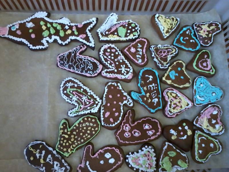 В один из дней ребята занимались росписью козуль. Как настоящие кондитеры, в колпаках, ребята принялись за работу. Очень старательно и с большим удовольствием дети расписывали козули в виде сердечек, варежек, рыбок. Их творения будут участвовать в ярмарке в Санкт – Петербурге.