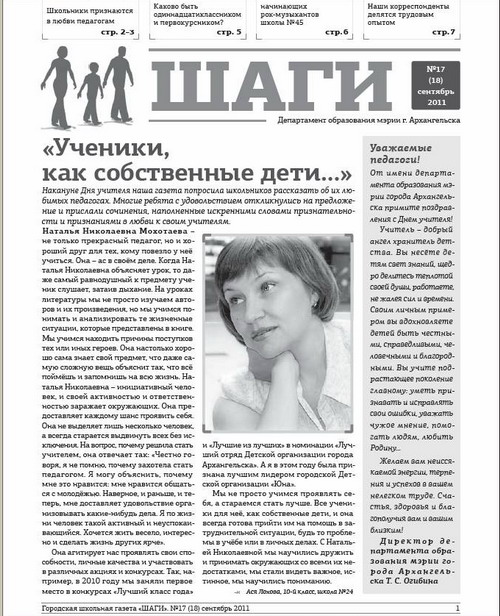Вышел праздничный номер городской школьной газеты «ШАГИ», посвященный Дню учителя