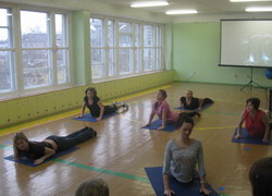 на фитболах для детей с нарушением речи, затем состоялось выступление и мастер-класс тренера по художественной гимнастике Областного центра дополнительного образования, в которых гости приняли активное участие. Педагогов города заинтересовала презентация авторского пособия "Танцевальный ковер" с использованием ИКТ и мастер-класс по проведению балет-пластик шоу "Морское путешествие" воспитателя по физическому воспитанию детского сада №113 "Ветерок". В перерыве в уютном холле гостям была предложена витаминная пауза с дегустацией отвара шиповника с изюмом.