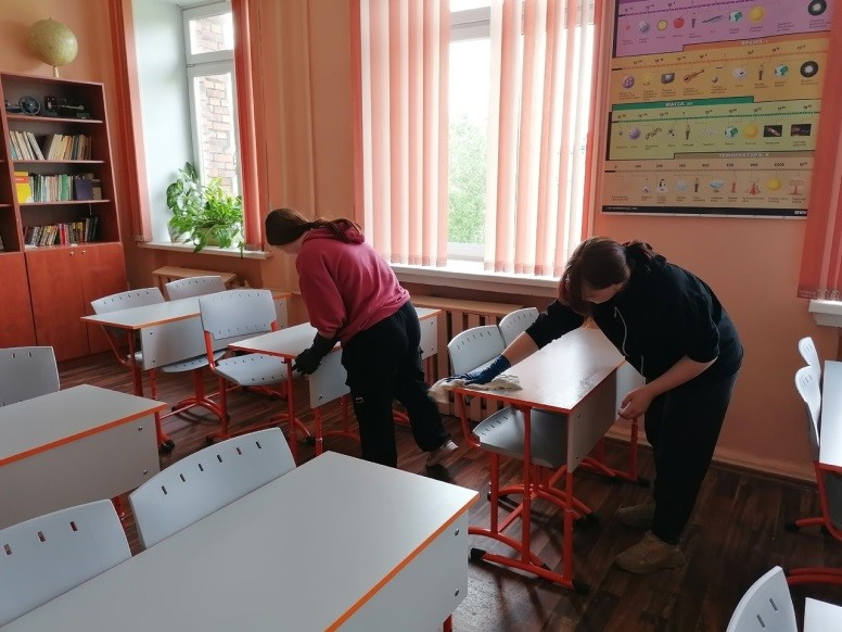 Работа, которую выполняют школьники, это работа категории лёгкого труда: уборка помещений, благоустройство школьной территории.