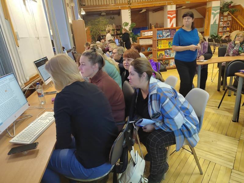 "Город Архангельск" по направлению "Методическое сопровождение библиотечных работников образовательных организаций города Архангельска в условиях цифровой образовательной среды в школе" (МБОУ СШ № 35). Мероприятие подготовлено и проведено сотрудниками Архангельской областной детской библиотеки имени А.П.Гайдара. В работе приняли участие 20 школьных библиотекарей.