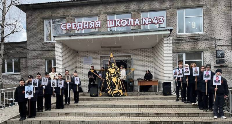 В городе Архангельске в преддверии Дня Победы учащиеся МБОУ СШ № 43 приняли участие в акции "Наш бессмертный полк"
