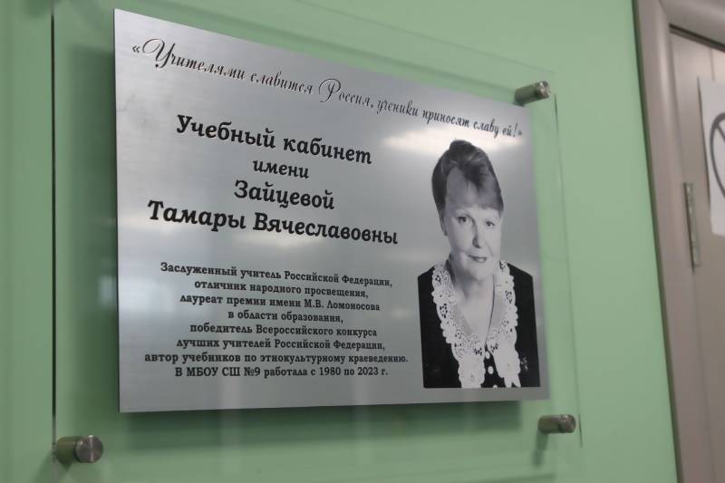 Сегодня в школе № 9 состоялась церемония открытия учебного кабинета имени Заслуженного учителя Российской Федерации Тамары Вячеславовны Зайцевой