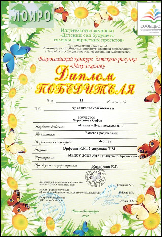 Работа "Винни - Пух и все, все, все" Черепановой Софьи заняла II место по Архангельской области.