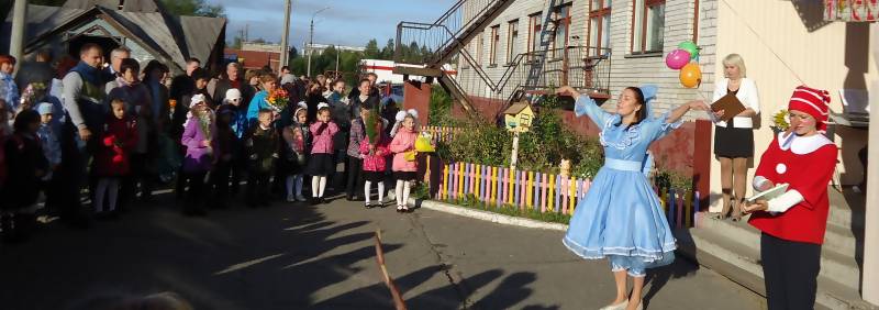 выпускники 2014 года и их родители, где прошёл традиционный праздник "Буратино идёт в школу". В ходе театрализованного представления вместе с Мальвиной, Джином и Буратино дети принимали активное участие в танцах, пели песни и читали стихи. По случаю начала нового учебного года с поздравлениями и напутственными словами к ребятам обратилась руководитель детского сада Галина Юрьевна Хмелева, а настоятель церкви Ксении Петербургской – священнослужитель отец Олег благословил их на терпение и старание.