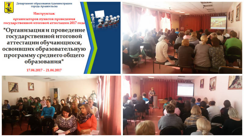Будущие организаторы ЕГЭ познакомились с особенностями проведения ЕГЭ в 2017 году: использование технологии "Печать КИМ" во всех аудиториях, обеспечение видеонаблюдения в 100% аудиториях пунктов проведения экзамена. Педагоги города обсудили основные новации в действиях организатора при проведении ЕГЭ в аудитории, за её пределами. Особо обратили внимание на запрет наличия у всех выпускников и организаторов в ППЭ мобильных телефонов и других гаджетов. Также во время инструктажа педагоги просмотрели обучающий фильм, подготовленный представителями Рособрнадзора "Технология печати КИМ в ППЭ". По итогам обучения все организаторы ответили на вопросы итогового теста, результаты которого будут озвучены на совещании директоров школ города Архангельска 28.04.2017.