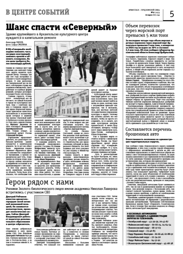 В свежем выпуске муниципальной газеты «Архангельск – город воинской славы» журналисты редакции в еженедельном режиме готовят авторские материалы по наиболее ярким событиям уходящей недели.