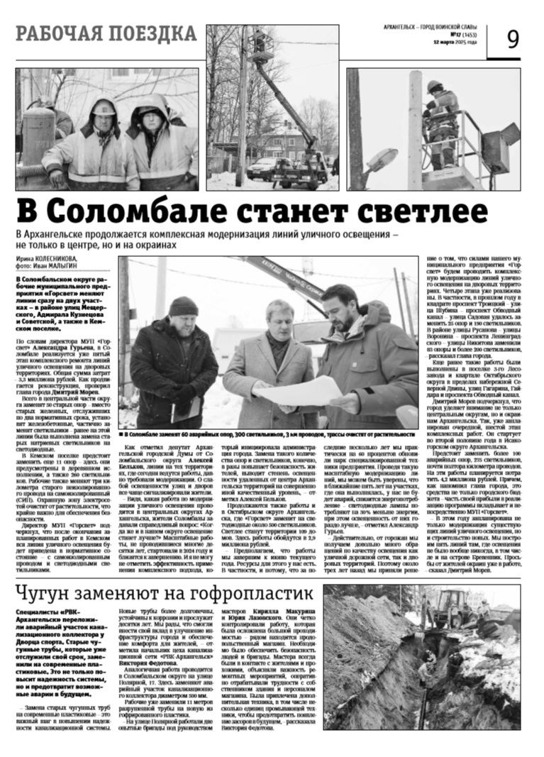 «В Соломбале станет светлее. В Архангельске продолжается комплексная модернизация линий уличного освещения - не только в центре, но и на окраинах»;