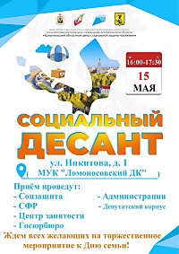 15 мая с 16:00 до 17:30 в Архангельске состоится социальный десант, приуроченный к Дню семьи.