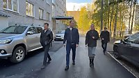 В ходе поездки народные избранники посетили: подъезд к школе № 9, проезд к поликлинике УВД на Новгородском проспекте, проезд вдоль дома по ул. Смольный буян, 21, баскетбольная и детская площадки на ул. Тимме, 2.