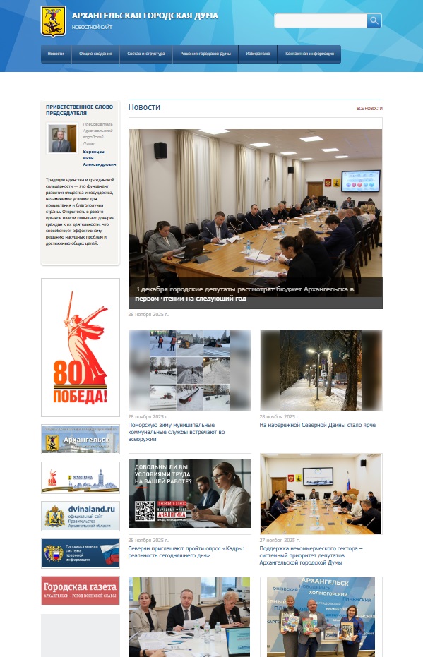 Рады сообщить о работе нового новостного сайта Архангельской городской Думы