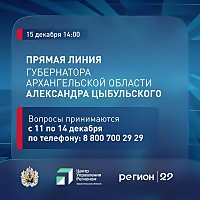 15 декабря в 14:00 начнется прямая линия губернатора Архангельской области Александра Цыбульского!