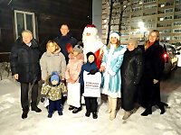 Большая семья северянина Юрия встречала Деда Мороза и Снегурочку во дворе дома на улице Полины Осипенко. На руках у него сидел самый младший сын Илья, а рядом другие дети — Руслан, Кристина и Евгения.