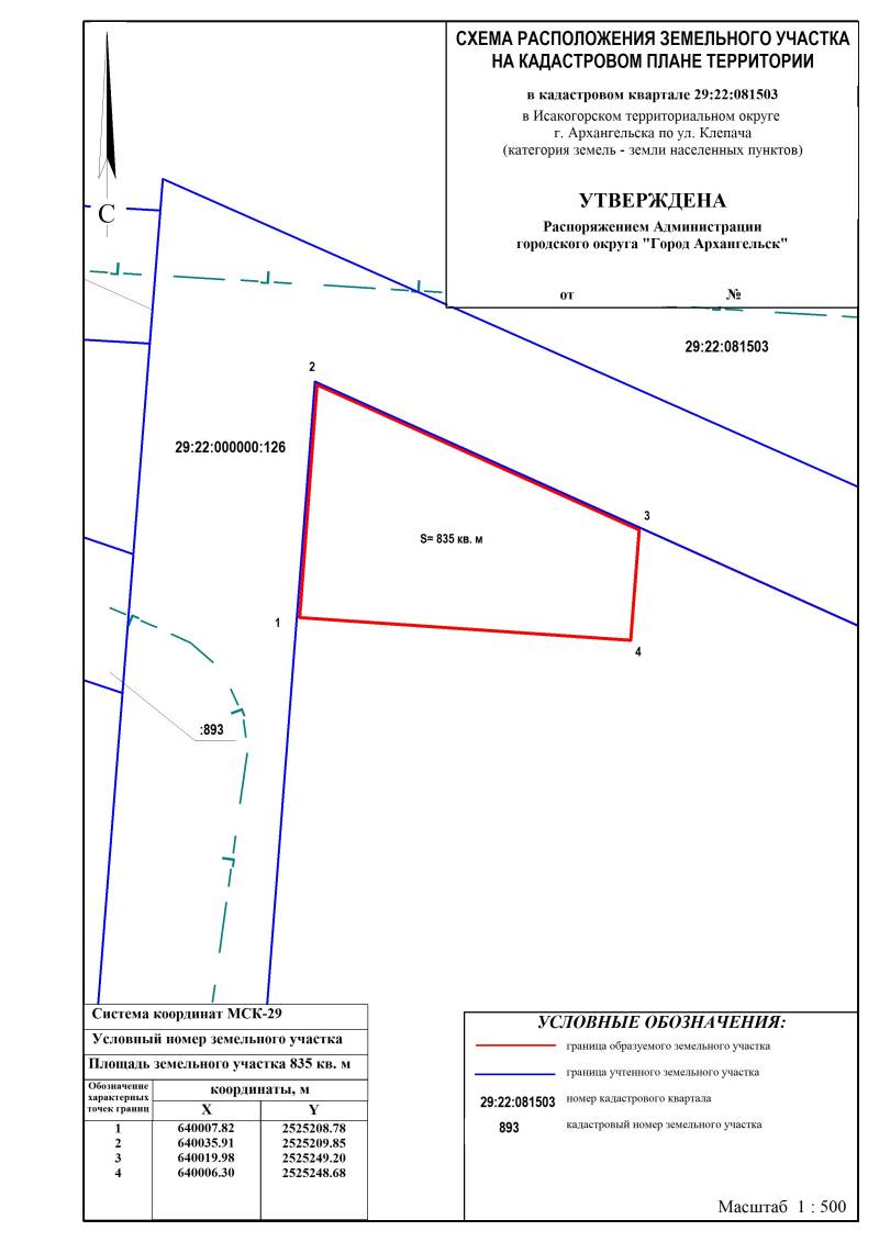 по ул. Клепача площадью 835 кв. м, для индивидуального жилищного строительства согласно представленной схеме расположения земельного участка.